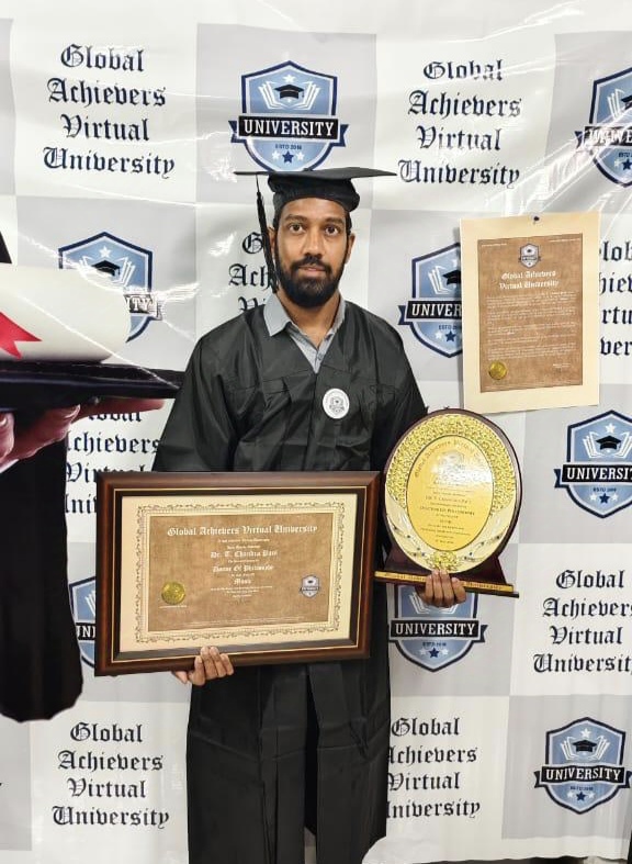 Dr. T. Chandra Paul has been honored with the Honorary Doctorate (Ph.D.) in Music for his outstanding contributions to the art of music, his exceptional performances, and his dedication to preserving and promoting musical heritage.